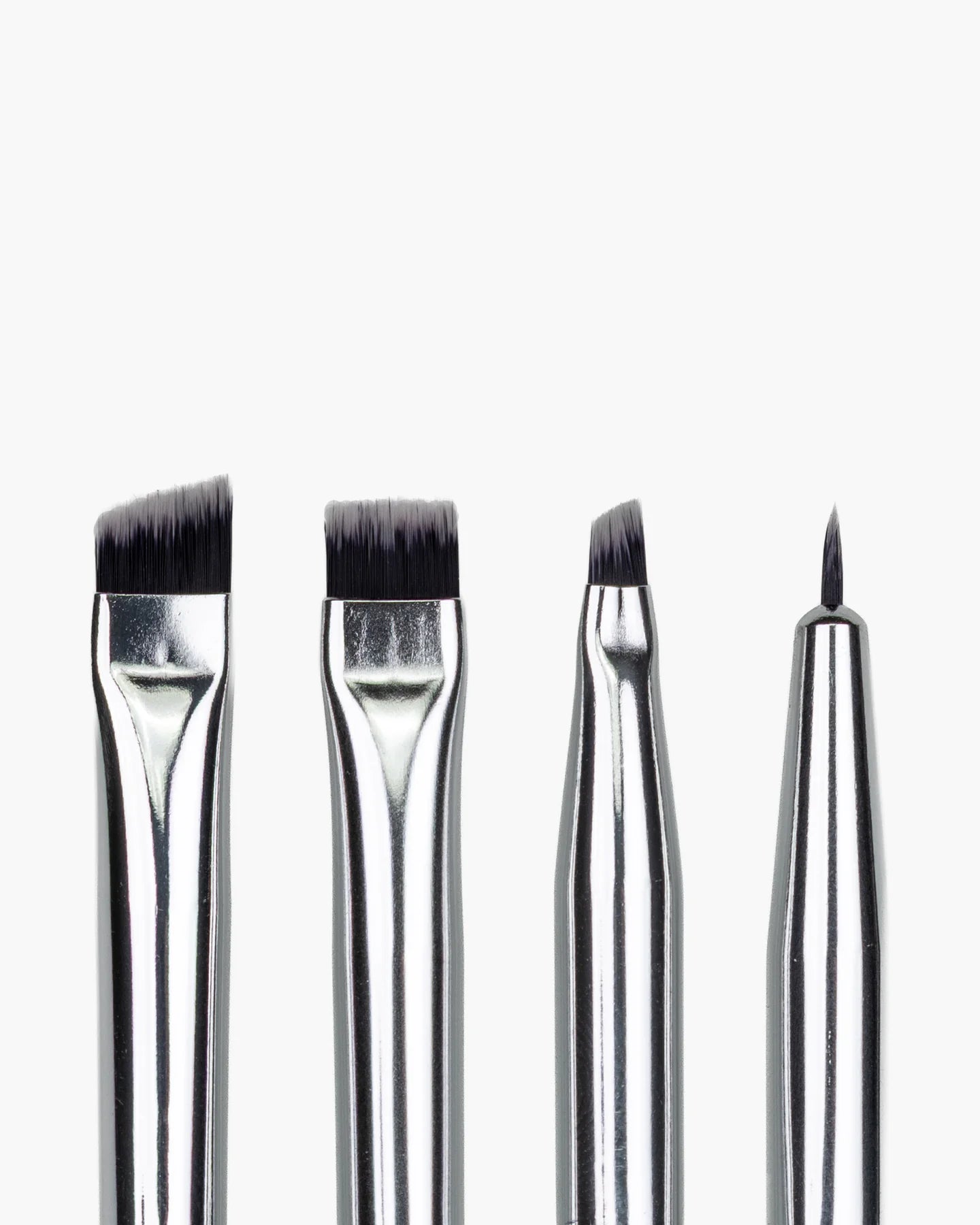 Dip the Brow Brush into tint, concealer, or product of choice, then apply in smooth, even strokes along the brow edges. Use the straight edge to sharpen lines, clean up around arches, or highlight the brow bone.